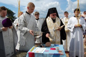 После окончания Божественной литургии был совершен крестный ход к месту, выбранному под строительство нового храма, где была заложена капсула и первый кирпич. После освящения памятной плиты Владыка Артемий пожелал настоятелю и прихожанам помощи Божией в деле строительства новой церкви.
