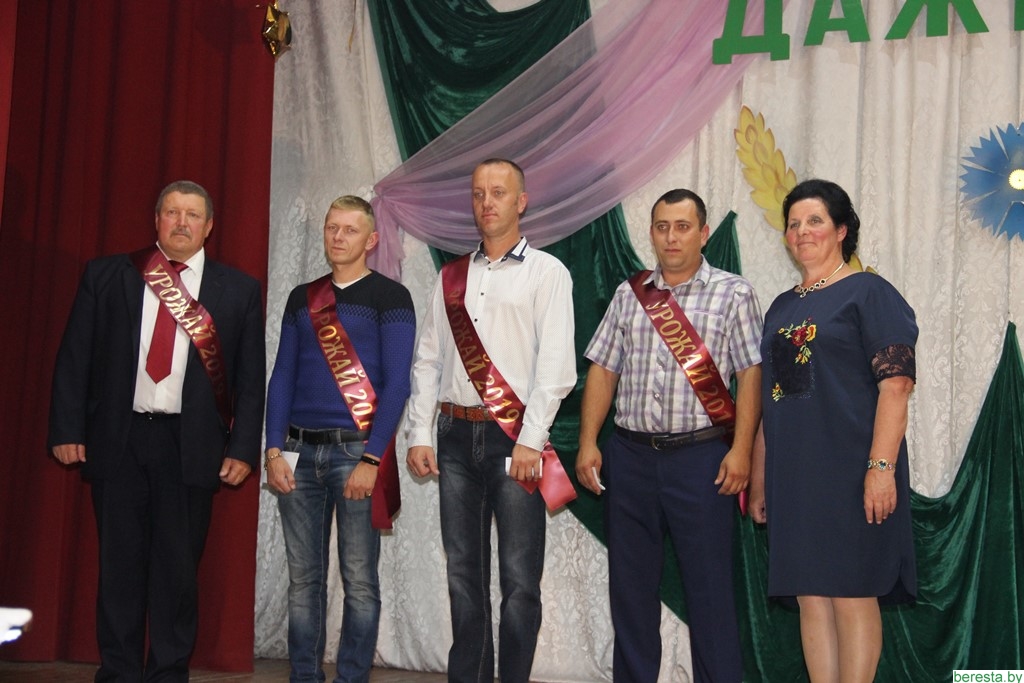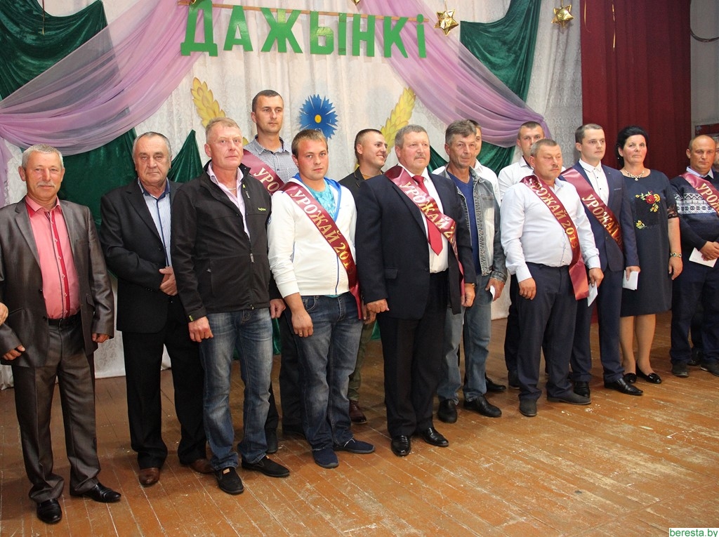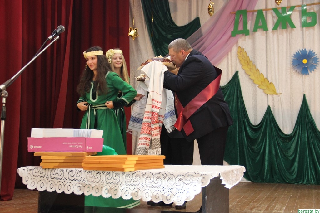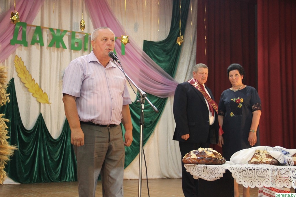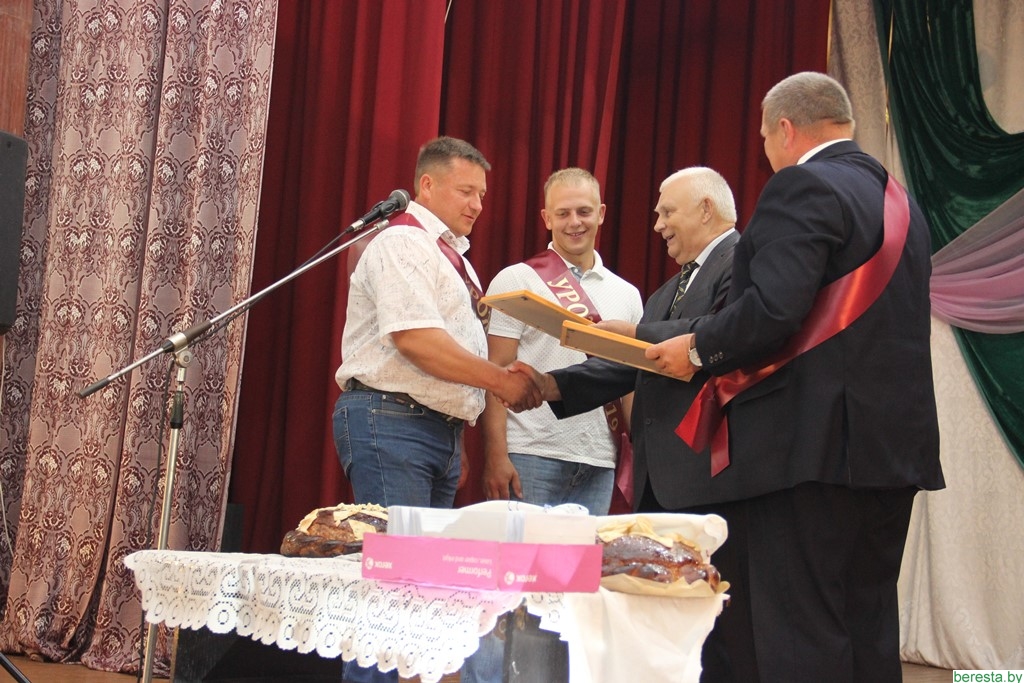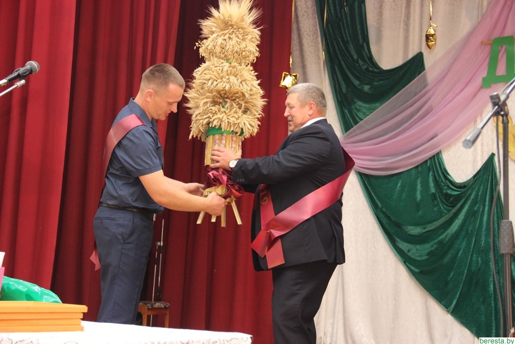 Первый «тысячник» в хозяйстве и в районе Юрий Польяновский вручил директору предприятия Валерию Павлюкевичу традиционный дожиночный сноп, а девушки в ярких нарядных костюмах преподнесли ему, а также председателю райкома профсоюза работников агропромышленного комплекса Владимиру Апону и председателю Олекшицкого сельисполкома Виталию Головачу караваи.