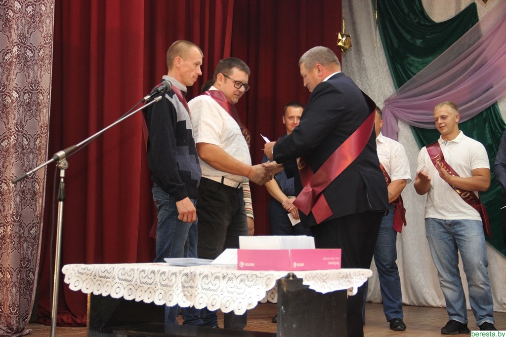 — Сегодня мы подводим черту работы на протяжении целого года, — сказал директор РСУП «Олекшицы» Валерий Павлюкевич, обращаясь к участникам праздничного мероприятия. — Я благодарен всем нашим работникам, всем специалистам, за полученный урожай, за то, что уборочная страда прошло четко, организованно и спокойно. Погодные условия, конечно, немного подвели. Где-то серьезно подсушило. А там, где чаще попадал дождик, получили по 60 и под 70 центнеров зерна с каждого гектара. На засушенных участках было по 28-30 центнеров. Но в целом урожайность составила 54,5 центнера. Это хороший итог, больше на 2225 тонн, чем в прошлом году, плюс надеемся на кукурузу. Мы в этом году прожили со своим зерном, не покупали на стороне. Есть надежда, что опять будем с молоком и мясом.