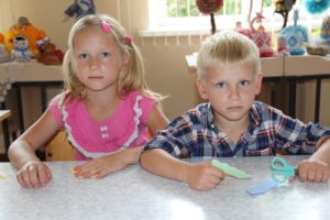 Келли и Макар Сучок (на снимке) родились и живут в городе Хуалянь на острове Тайвань. В этом году они впервые посетили Беларусь – приехали в деревню Синьки, откуда родом их бабушка, Лариса Александровна Ленкова, в девичестве Кислейко. Сама Лариса Александровна живет в Гродно, преподает иностранный язык в ГрГУ имени Янки Купалы, но на лето приехала вместе с внуками в родительский дом, чтобы познакомить их с родными местами. На мероприятие, которое проводилось в Центре творчества детей и молодежи, Лариса Александровна с внуками в первый раз попали совершенно случайно: они заезжали по делам в Территориальный центр социального обслуживания населения. Увидев играющих во дворе Центра ребят, Келли и Макар захотели к ним присоединиться, и их охотно приняли. Заграничным гостям очень понравилось в Центре, и сейчас они не пропускают ни одного мероприятия. Любят Келли и Макар как игровые и спортивные программы, так и занятия в творческих мастерских.