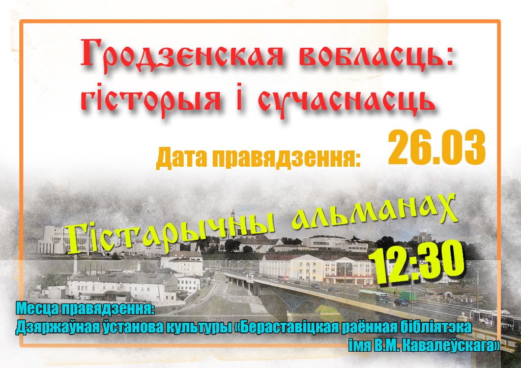 Гістарычны альманах «Гродзенская вобласць: гісторыя і сучаснасць» пройдзе ў Бераставіцкай раённай бібліятэцы