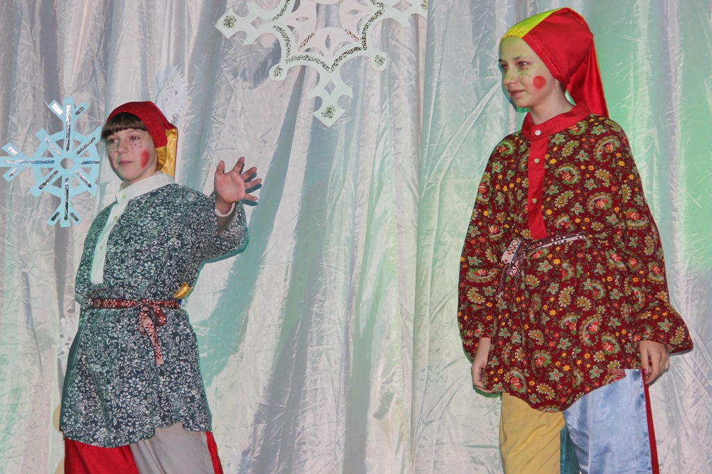 Пасля тэатралізаванага прад­стаўлення ў фае раённага Дома культуры адбыўся традыцыйны карагод вакол ёлкі разам з казачнымі персанажамі і Дзедам Марозам. А за расказаныя вершы і прыгожыя навагоднія касцюмы юныя госці атрымалі сувеніры.