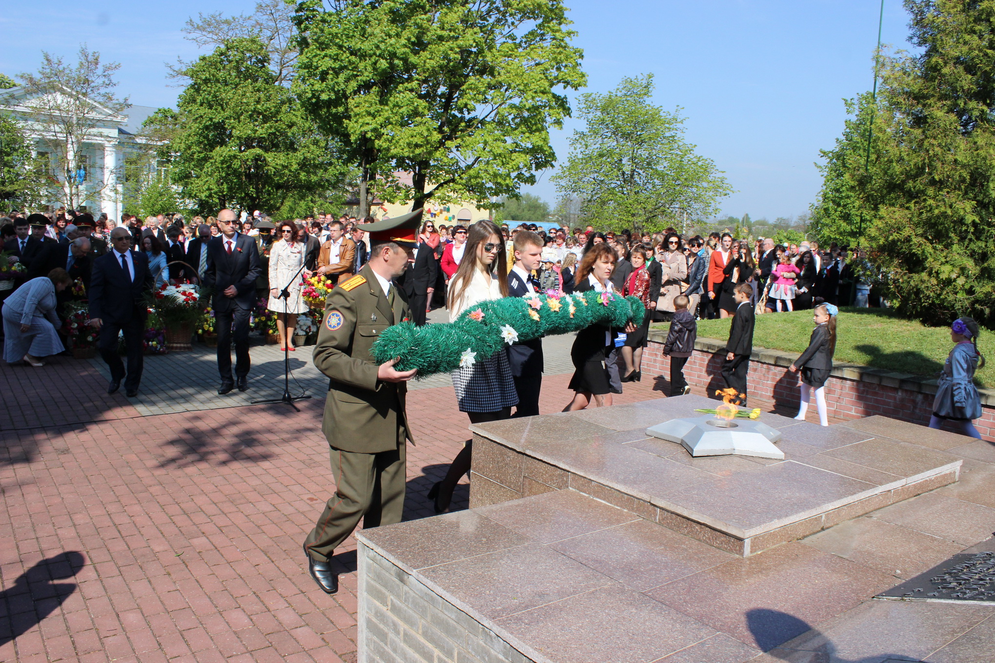 Минутой молчания почтили присутствующие память погибших в годы Великой Отечественной войны, прогремели залпы праздничного салюта. К памятнику и мемориальной плите были возложены гирлянда славы и живые цветы.