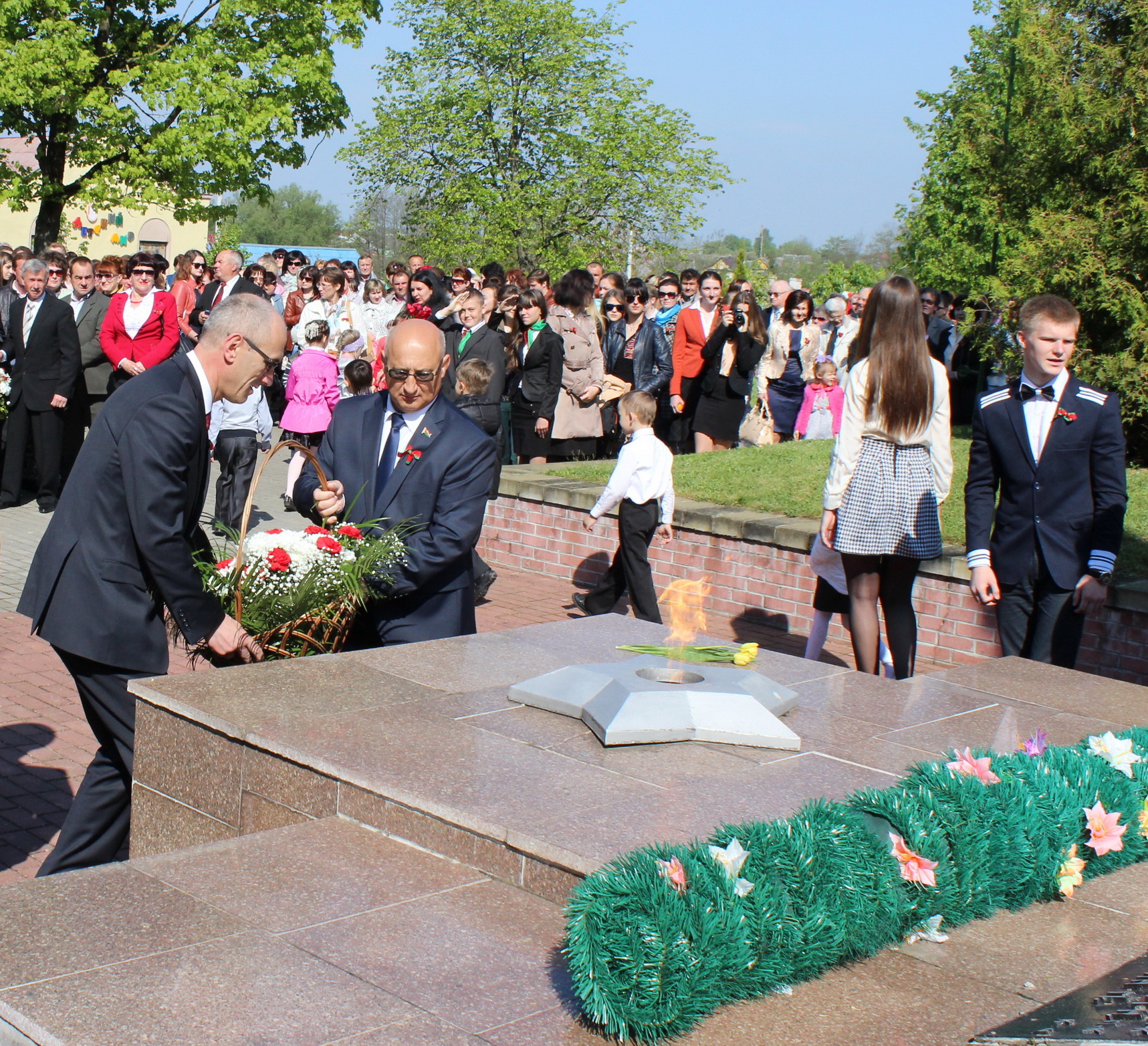 Празднование Дня Победы в районном центре по традиции началось у памятника воину-освободителю. На торжественный митинг, посвященный 69-ой годовщине Победы советского народа в Великой Отечественной войне и Дню Государственного герба и Государственного флага Республики Беларусь, собрались представители трудовых коллективов, организаций и учреждений района, участники звездной эстафеты, молодежь.