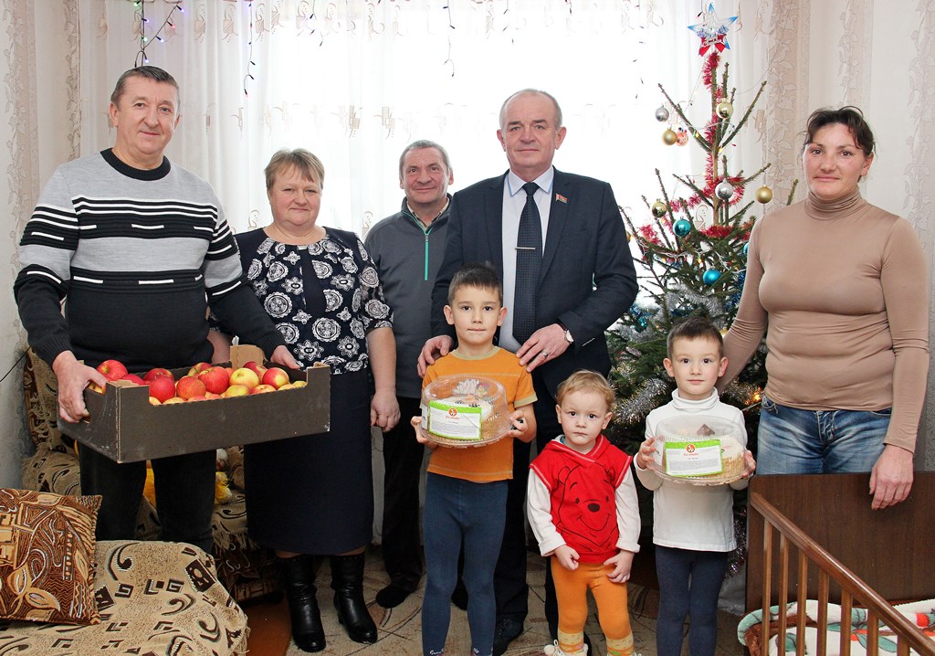 Вчера, 26 декабря, депутат Палаты представителей Национального собрания Республики Беларусь по Гродненскому сельскому избирательному №53 Сергей Литвин приехал в Берестовицкий район, чтобы поучаствовать в предновогодней акции «Наши дети». Он посетил многодетную семью Юрия и Анны Урбанович в деревне Почебуты, в которой воспитывается шестеро детей. Вместе с представителем высшей законодательной власти страны в гости к Урбановичам приехала и Елена Будницкая, депутат местного и районного Совета депутатов. Депутаты сердечно поздравили ребятишек, их родителей с Рождеством и наступающим Новым годом и вручили детям сладкие подарки и фрукты. А еще Сергей Иванович привез целый овощной набор из капусты, моркови, свеклы, лука, картофеля, который будет очень кстати для витаминного питания в большой семье.