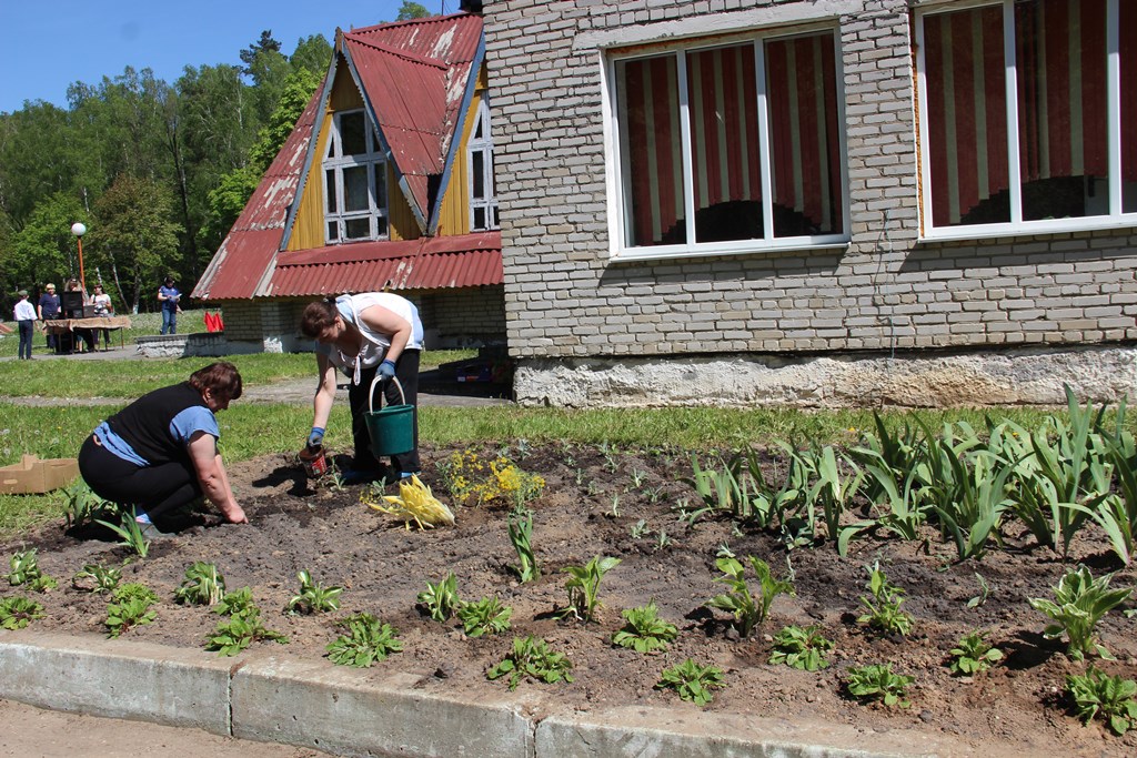 организационно-педагогической работы отдела образования, спорта и туризма райисполкома Валентина Апуник и библиотекарь учебно-методического кабинета Елена Сидоркевич, они разработали проект по благоустройству лагеря, помогли в выборе цветов и высадке их на клумбы.