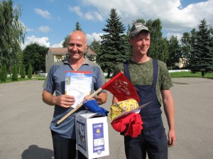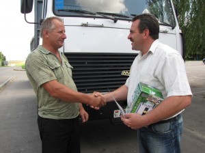 У СВК “Алекшыцы” адразу дзве ўзнагароды былі ўручаны вадзіцелю машыны “МАЗ” Сяргею Карпуцю (на здымку). Ён перавёз 1300 тон збожжа і ўзнагароджаны Падзячным пісьмом райвыканкама і райкама прафсаюза работнікаў АПК і каштоўнымі падарункамі, а таксама Падзячным пісьмом райкама прафсаюза работнікаў АПК і грашовай прэміяй.