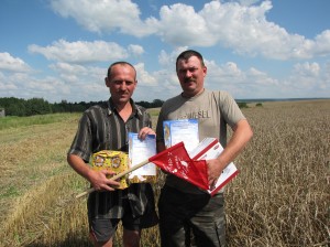 Прыемнай навіной для экіпажа камбайна “Лексіён-580” СВК імя Варанецкага Антона Іядкоўскага і Юрыя Кулікоўскага (на здымку) стала тое, што яны атрымалі аж 4 узнагароды, у тым ліку адну ад сваёй гаспадаркі. З 23 па 31 ліпеня яны намалацілі 995 тон збожжа і сталі пераможцамі раённага спаборніцтва за тыдзень па адпаведнай групе камбайнаў. Іх важкі ўклад у агульную скарбонку адзначаны Падзячным пісьмом райвыканкама і райкама прафсаюза работнікаў АПК і каштоўнымі падарункамі. Згодна з пастановай Бераставіцкага райкама Беларускага прафсаюза работнікаў АПК гэты ж экіпаж (першы ў гаспадарцы намалаціў 1000 тон збожжа) узнагароджаны Падзячным пісьмом і грашовай прэміяй. А па стане на 2 жніўня Антон Іядкоўскі і Юрый Кулікоўскі атрымалі таксама падзячнае пісьмо Гродзенскага абласнога камітэта Беларускага прафсаюза работнікаў АПК і грашовую прэмію. У адрас перадавога экіпажа прагучалі шчырыя віншаванні. Юрый – юнак старанны і працавіты, мае ўніверсітэцкую адукацыю і ў гарачую пару жніва стараецца для роднай гаспадаркі.