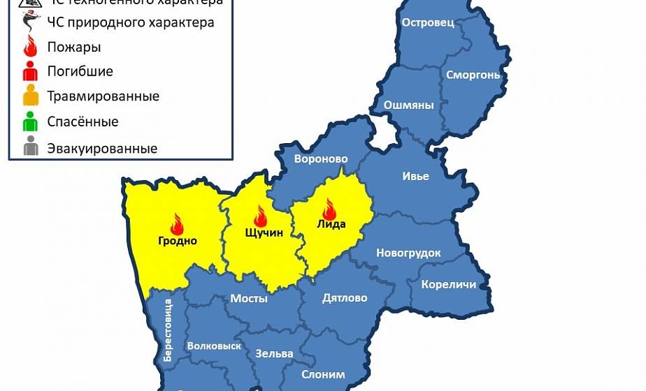 За сутки зарегистрирован 1 лесной пожар на площади 0,2га (Ивьевский район без привлечения подразделений МЧС). С начала года зарегистрировано 137 загораний сухой растительности на общей площади 93,09 га, 66 лесных пожаров на общей площади 47,04 га и 4 торфяных пожара на общей площади 2,323 га.