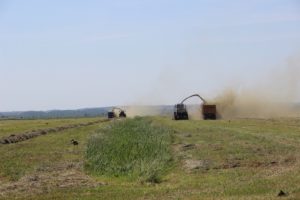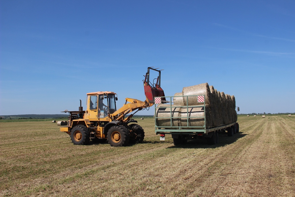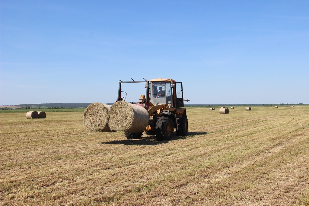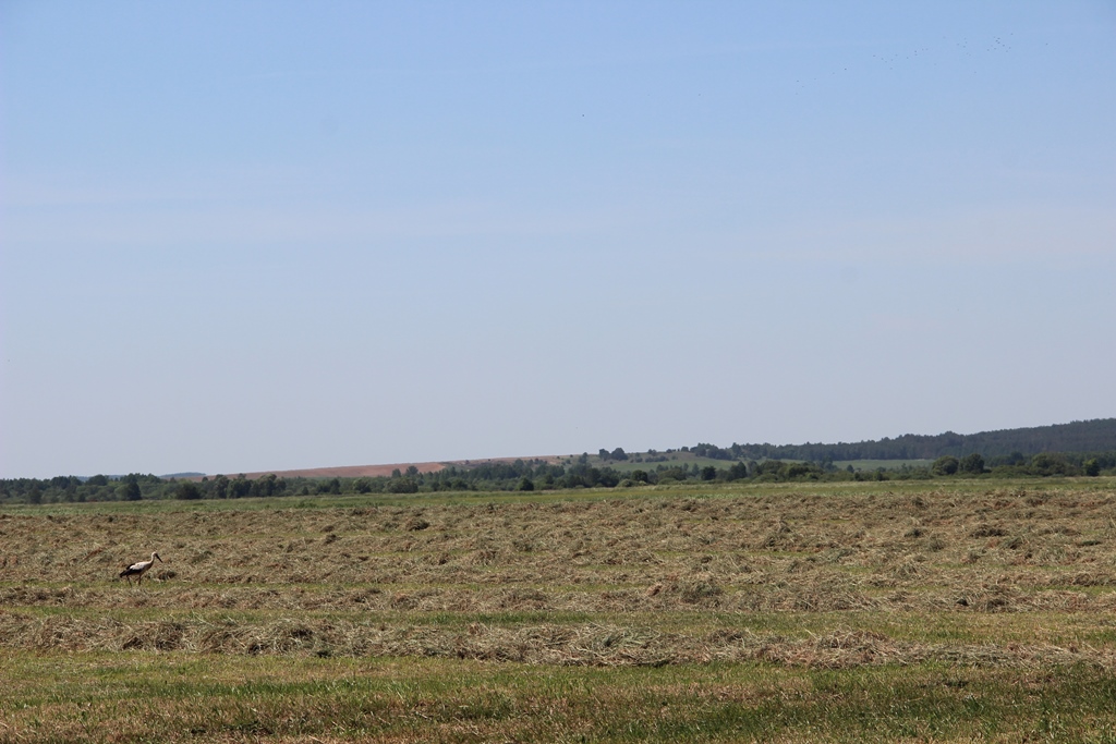 Тем временем перемещаемся к следующей точке координат, где проходит подбор и измельчение сенажной массы. Именно там наблюдаю основную часть задействованной на заготовке кормов техники. Присмотревшись, замечаю, как сквозь облако сенажной пыли, будто разрезая его своим телом, пробивается белый красавец с черными концами крыльев и длинными красноватыми ногами – аист. Именно в сопровождении обитателя низменных лугов и заболоченных местностей с девяти утра и до девяти вечера проходят трудовые будни работников данного сельхозпредприятия.