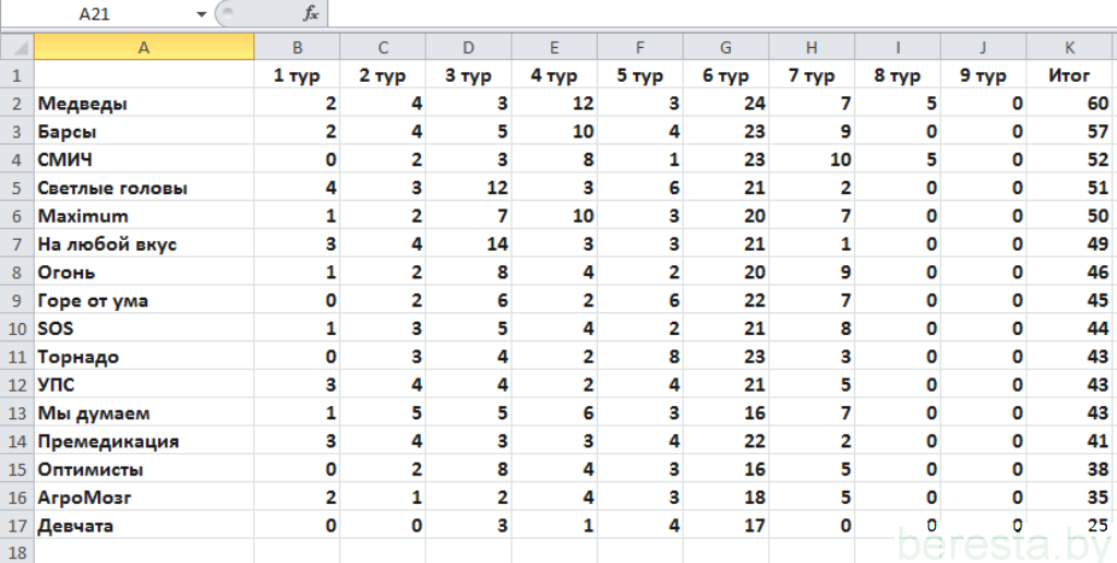 Конкурс капитанов подытожил интеллектуальную схватку несколько неожиданным изначально образом, распределив победные места в следующем порядке. На третьей позиции – команда «СМИЧ» Берестовицкого райисполкома. Обладатели «серебра» – сотрудники Берестовицкого сельскохозяйственного профессионального лицея в составе команды «Барсы». И, наконец, неоспоримые победители турнира – «Медведы». С отрывом в три балла от своих ближайших соперников молодые медики вот уже второй раз празднуют триумф.