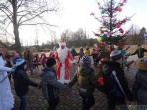 Дедушка Мороз и Снегурочка с ребятами водили хороводы, проводили конкурсы, а учащиеся читали стихи, пели песни, танцевали. За своё активное участие они получили сладкие призы.