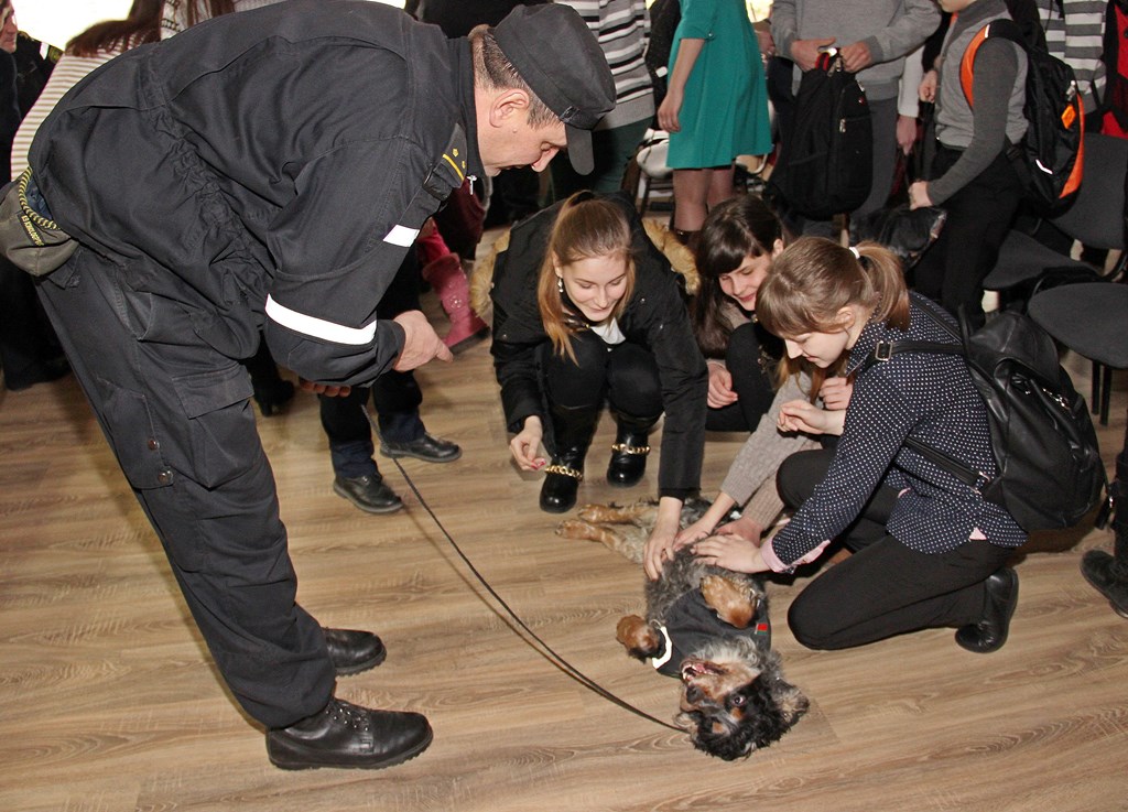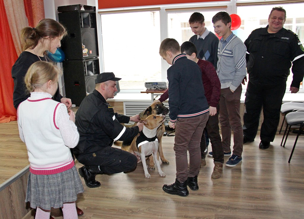 В конце прошлой недели в гостях у берестовицких школьников побывали необычные гости. На встречу с ними приехали сотрудники отдела кинологической службы Гродненской региональной таможни со своими четвероногими питомцами. Все места в актовом зале средней школы были заполнены до отказа. Пожалуй, впервые на небольшой сцене этого зала пришлось выступить таким необычным «артистам».