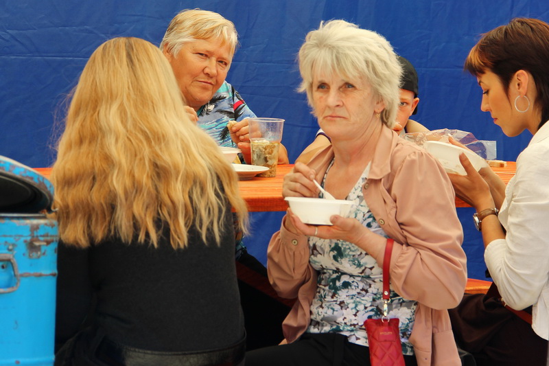 Традыцыйна на “Эйсмантаўскім падворку” частавалі польскім бігасам і юшкай. Дарэчы, яшчэ адным сюрпрызам для жыхароў Вялікіх Эйсмантаў і ваколіц стала выступленне клуба рыцарскіх мастацтваў “DIES MAGNA” з г.Ліда.