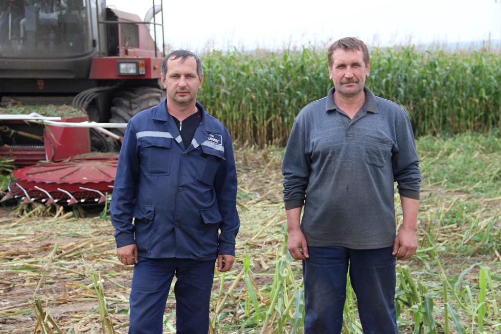 Юрий Почтаренко в хозяйстве работает порядка 27 лет, семь из них – за штурвалом кормоуборочного комбайна «Палессе». Именно на этом агрегате он занимается не только скашиванием полезной зерновой и кормовой культуры – кукурузы, но и заготовкой зеленой сенажной массы. Те же обязанности на время заготовительной кампании ложатся и на плечи механизатора Иосифа Полубятко, переехавшего на Берестовитчину с Мостовского района. Описывая свой стандартный рабочий день, мужчины отмечают, что в данный период сценарий ежедневно выполняемых ими действий неизменен: ранний подъем, проверка исправности техники – и в девять утра уже, как штык, на полях хозяйства, готовые незамедлительно приступить к своим непосредственным трудовым обязанностям. К примеру, на этапе уборки кукурузы на силос работники тщательно отслеживают высоту ее среза, ведь в дальнейшем это позволит значительно повысить энергетическую ценность корма благодаря уменьшению концентрации в нем клетчатки, которая преимущественно содержится в нижней части растения. В результате слаженных действий этому тандему механизаторов в день удается убирать от 15 до 25 гектаров площадей, при этом объемы свежескошенной зеленой массы колеблются в переделах 600-1000 тонн.