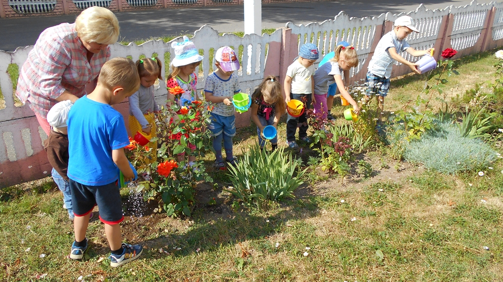 Окно в природу ребенку дошкольного возраста открываем мы – взрослые. В летний период предоставлена уникальная возможность учить детей видеть гармонию природы, постигать ее законы, ощущать красоту, любить и оберегать окружающий природный мир. В период летнего оздоровления изменен распорядок дня воспитанников дошкольных учреждений, увеличено время их пребывания на свежем воздухе, составлены карты-схемы маршрутов в ближайшее природное окружение. Приоритетным является организация нерегламентированной деятельности. Образовательная деятельность организована по тематическим неделям. В Пархимовском яслях-саду – базовой школе очередная тематическая неделя прошла под девизом «Мы дружим с природой». Неделя была насыщена беседами-диалогами «Что цветет летом?», «Как лейка с цветами дружила», проблемными ситуациями «Можно ли рвать цветы?», играми-превращениями «Если бы ты был…» и т.д. Все эти формы работы способствовали знакомству с цветущими растениями на клумбах, закрепили представления о строении, пользе цветов, послании заботиться о них. Каждый день маленькое ведро и крохотная лейка воды, принесенная детьми, помогала выживать цветку в условиях «знойного» лета, сберечь красоту и природные богатства малой родины.