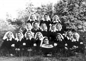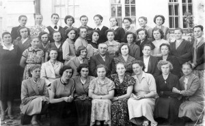 С большой теплотой вспоминала мама врачей, которые обучали будущих медсестер. Они во втором ряду. В центре – главврач больницы Александр Михайлович Рубинский, слева от него — Надежда Ивановна Медведева, справа – Зинаида Николаевна Бойцова, рядом с ней — Мамонтова. В третьем ряду (слева направо) вторая Вера Константиновна Костюкевич, пятая — Вера Сулавко, десятая — Зоя Воробей, затем — Кристина Станиславовна Баер, рядом с ней стоит жена главврача Анна Ивановна Рубинская, а за ней Ольга Михайловна Винникова.
