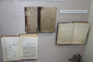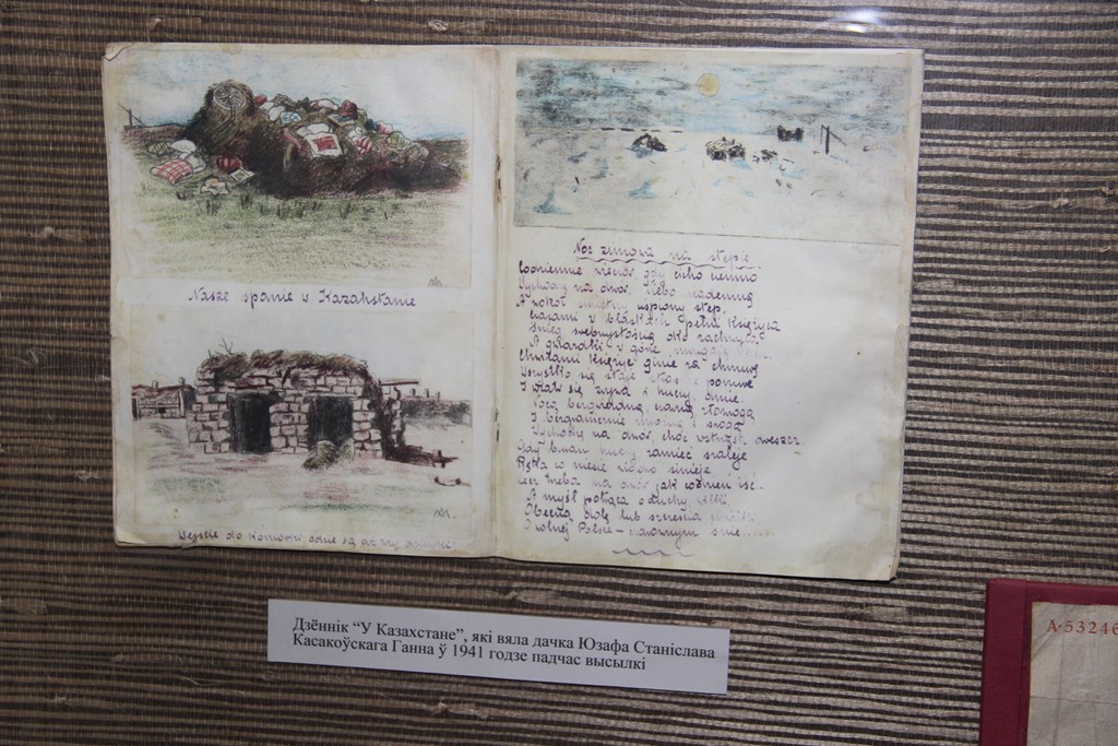 – Уласная бібліятэка Касакоўскіх налічвала каля 3000 тамоў кніг на лацінскай, польскай, французскай, рускай, нямецкай мовах пераважна па гісторыі, праву, геральдыцы, філасофіі. У спецыяльным памяшканні размяшчаўся даволі багаты сямейны архіў. Ён складаўся з дакументаў, якія краналі яшчэ часы гетмана Хадкевіча. Бібліятэка перажыла першую сусветную вайну і ў міжваенны час таксама папаўнялася. Некаторыя дакументы з архіву былі перададзены Гродзенскаму музею. Але большая частка кніг, архіўных збораў і калекцый мастацкіх твораў былі разрабаваны і спалены разам з палацам на пачатку другой сусветнай вайны. Тым не менш, з той часткі кніг, што захавалася, сям’я Касакоўскіх перадала нам некалькі выданняў з даравальным подпісам. Кнігі гэтыя прадстаўлены на экспазіцыі. А яшчэ экспазіцыя ўтрымлівае копію дзённіка дачкі Юзафа Станіслава Касакоўскага Ганны, які дзяўчына вяла ў 1941 годзе падчас высылкі сям’і ў Казахстан. Дзённік ілюстраваны аўтарскімі малюнкамі і, што цікава, утрымлівае польска-казахскі слоўнік, састаўлены самой Ганнай. Гэты помнік мемуарнай літаратуры нам таксама перадалі нашчадкі Касакоўскіх.