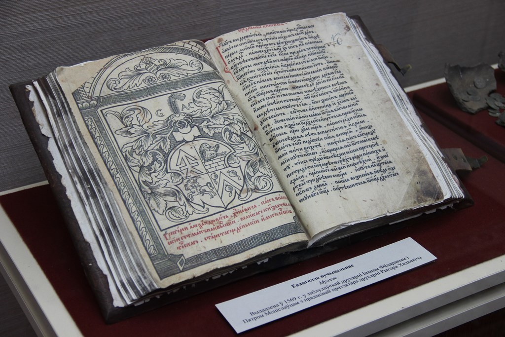 – Непасрэдна ў дачыненні да 500-годдзя беларускага кнігадрукавання, ці, дакладней, калі казаць пра ўплыў нашых суайчыннікаў на развіццё кнігадрукавання, трэба адзначыць, што ў музейнай экспазіцыі знаходзіцца асобнік заблудаўскага Евангелля – першага на Беларусі друкаванага Евангелля. Праўда, гэта толькі копія. Аднак для нас выданне “Евангелле вучыцельнае”, надрукаванае ў 1569 годзе ўсходнеславянскімі першадрукарамі Іванам Фёдаравым і Пятром Мсціслацам, уяўляе цікавасць найперш тым, што выдадзена яно за грошы гетмана Вялікага Княства Літоўскага Рыгора Хадкевіча ў яго маёнтку Заблудава (каля Беластока). Рыгор Хадкевіч з’яўляецца заснавальнікам старэйшай (бераставіцкай) галіны роду Хадкевічаў. Заблудаўскае Евангелле – гэта зборнік гутарак і павучанняў з тлумачэннем евангельскіх тэкстаў. Адметна, што тут змешчаны першы друкаваны твор старажытнай усходнеславянскай літаратуры — «Слова на Ушэсце» Кірылы Тураўскага. А на адвароце тытульнага ліста кнігі змешчаны герб Хадкевічаў і прадмова Рыгора Хадкевіча на старажытнабеларускай мове.