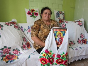 — Я многія свае вырабы падарыла, — на развітанне расказвае гаспадыня. – Іх ужо не так многа. А вышываю найбольш зімою. Што рабіць зімовымі днямі? За зіму ў мяне атрымліваецца дзве іконы, два ручнікі. Закончу работу, палюбуюся. Для некага вышываць, можа, цяжка. А мне гэта — для душы…