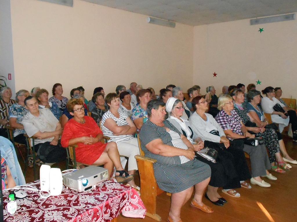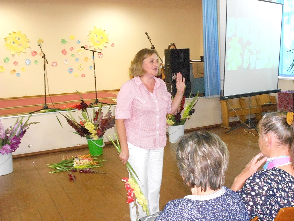 Алеся Николаевна и Людмила Николаевна тепло поприветствовали собравшихся пожилых людей. А Павел Скворнюк и Алла Кветковская рассказали о своих увлечениях. Павел Павлович отметил положительное влияние скандинавской ходьбы на самочувствие и здоровье. Алла Александровна продемонстрировала интересную презентацию о цветоводстве. Также женщина привезла с собой огромное количество цветов, которые после выступления подарила присутствующим и участникам концертной программы.