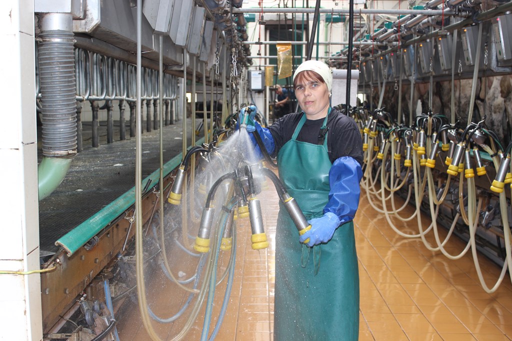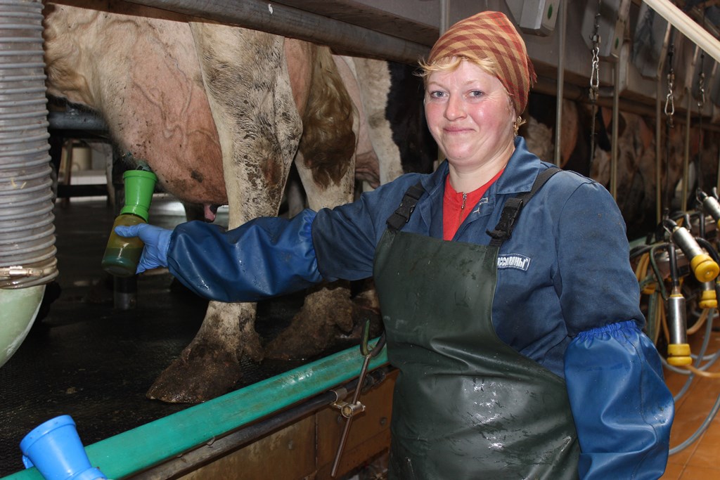 Аператары машыннага даення Таццяна Пячко і Ганна Дзямбіцкая сапраўдныя асы ў сваёй прафесіі. І вопыт, і адказнасць, любоў і спагада да жывёлы – усё ў іх ёсць. Яны паказалі мне, як захоўваюцца належныя патрабаванні. Санітарыя, неабходная апрацоўка вымя кароў супраць мастытаў – неад’емная састаўная частка высокіх надояў і якаснай сыравіны. Дарэчы, за малако “экстра” добра плацяць, так што стымул для старання ў людзей ёсць.