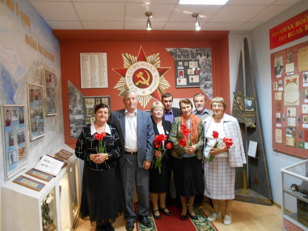 Затым з успамінамі і словамі ўдзячнасці калектыву школы выступілі ганаровыя госці: Мікалай Канстанцінавіч Акулевіч, Валерый Сяргеевіч Карытца, Ганна Іванаўна Карытца, Галіна Сцяпанаўна Красоўская, Анатолій Іванавіч Сяўко, Надзея Васільеўна Макулік, Галіна Міхайлаўна Яўсеенка. Першым узяў слова Анатолій Іванавіч Макулік, які расказаў аб баявым шляху бацькі, Івана Данілавіча Макуліка. Іван Данілавіч з баямі прайшоў да Берліна, быў узнагароджаны ардэнамі і медалямі. Анатолій Іванавіч перадаў у фонды музея некаторыя рэліквіі, якія засталіся ад яго бацькі. Валерый Сяргеевіч Карытца падзяліўся ўспамінамі аб выпрабаваннях, якія выпалі на долю яго бацькі, Сяргея Канстанцінавіча Карытца. Баявы шлях Сяргея Канстанцінавіча пачаўся ў 1942 годзе пад Сталінградам, а завяршыўся ў 1945 годзе ў Аўстрыі. Мноства ўзнагарод сведчаць аб удзеле Сяргея Канстанцінавіча ў самых значных і складаных баявых аперацыях, у якіх ён праявіў сябе як выдатны воін і камандзір. Выступленне Галіны Міхайлаўны Яўсеенка было пранікнута гонарам за бацьку, Міхаіла Васільевіча Дудко, які мужна ваяваў на 3-м Беларускім фронце, быў паранены. Да Галіны Мікалаеўны далучылася Надзея Васільеўна Сяўко, якая расказала аб баявым шляху бацькі, Васілія Іванавіча Бандарыка. Васілій Іванавіч удзельнічаў у штурме Кёнігсберга. Мікалай Канстанцінавіч Акулевіч у сваім выступленні адзначыў, што яго бацька, Канстанцін Мікалаевіч Акулевіч, быў узнагароджаны медалём “За адвагу”, таксама меў медаль “За ўдзел у абарончай вайне 1939 года”.