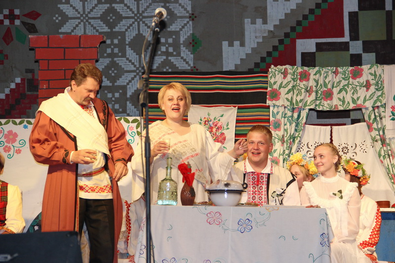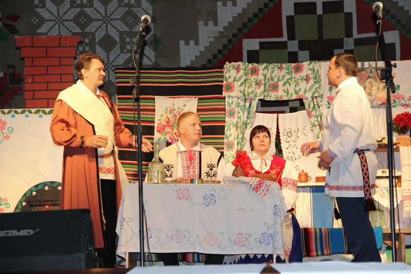 Ролі галоўных герояў выконвалі: хлопец Янка (Антон Бажко), дзяўчына Алёнка (Аляксандра Міцкевіч), Маці (Валянціна Шыш), Бацька (Сяргей Касьян), Сват (Уладзімір Макар), Свацця (Алёна Бутрыла). У якасці Гасцей вяселля выступілі ўдзельнікі дзіцячага фальклорнага гурту “Валошкі” Алекшыцкага ЦДК, дзіцячага фальклорнага гурту “Рамонкі” Пархімаўскага ДКіВЧ, народнага ансамбля польскай песні “Стокроткі” Макараўскага ДНК, фальклорнага гурту “Прамень” Пыхоўчыцкага ДСКП (салісткі Ала Ляшкевіч, Рэгіна Пальяноўская), фальклорнага гурту “Вясёлка” Малабераставіцкага ЦДК.