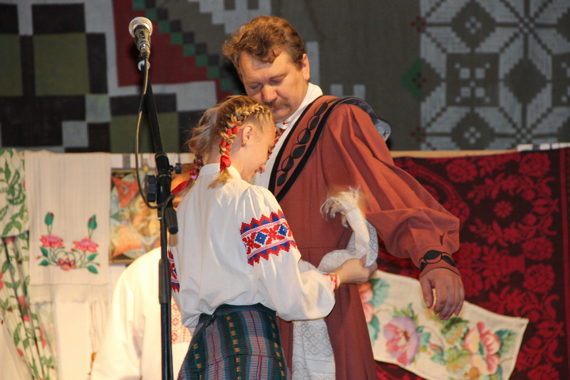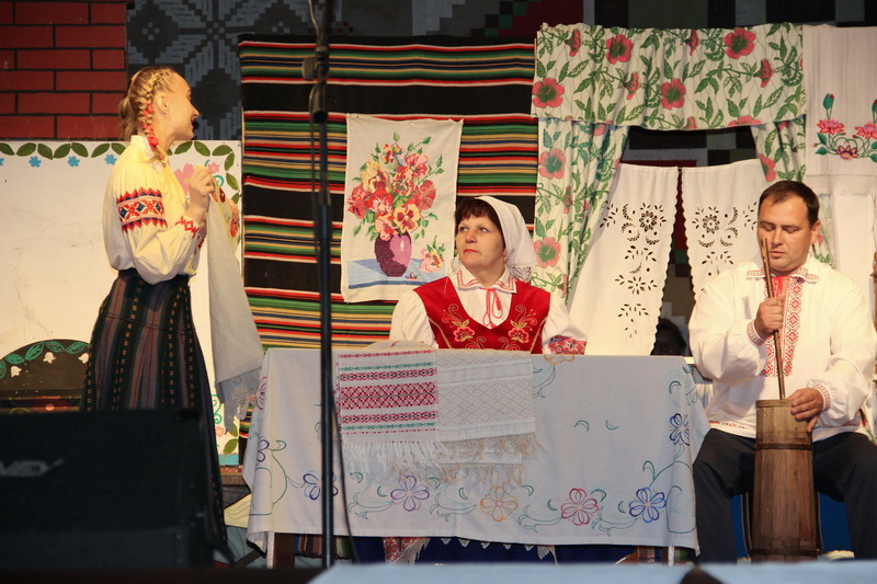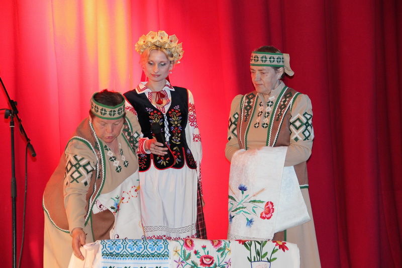 Выступленне пачалося з мультымедыйнай прэзентацыі, якая пазнаёміла з ручнікамі, распаўсюджанымі на тэрыторыі Бераставіччыны, а таксама з майстрыхамі, якія іх стваралі. Вядучыя – дырэктар Эйсмантаўскага ЦДК Рыта Каспшак і рэжысёр народнага тэатра “Магія ігры” РДК Марына Хамяня – расказалі аб ролі ручнікоў у народным побыце.