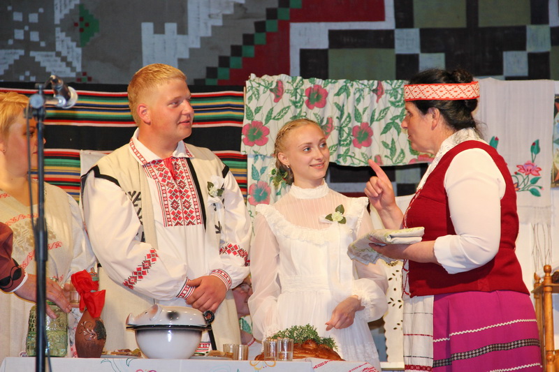 А далей былі паказаны тры эпізоды вясельнай абраднасці, у якіх шырока выкарыстоўваецца ручнік. Гэта заручыны, зборная субота і вяселле.