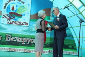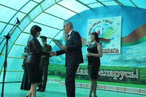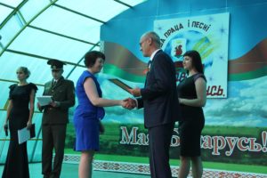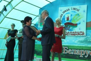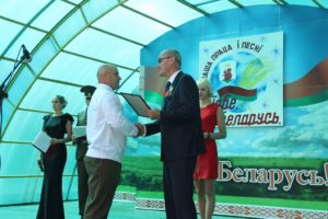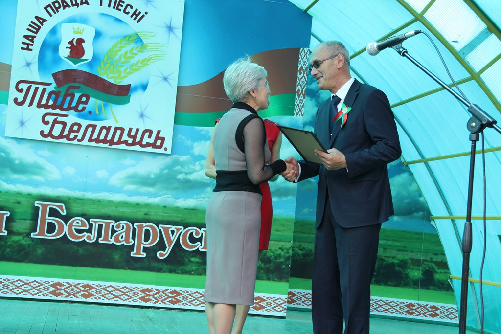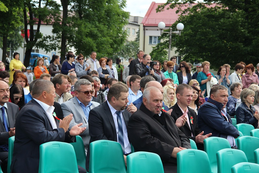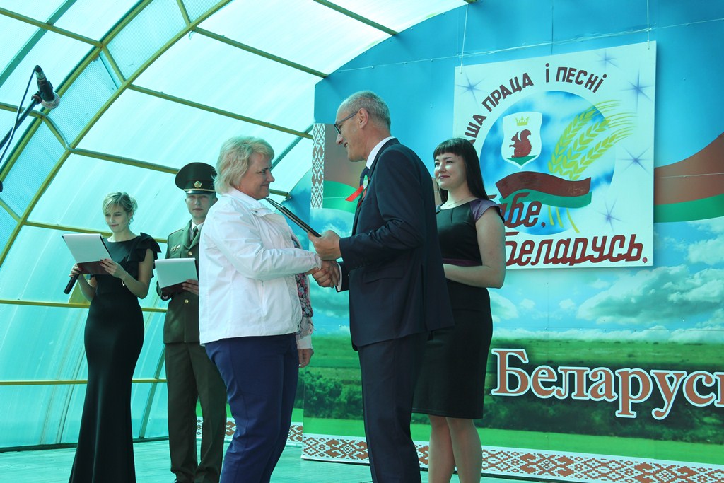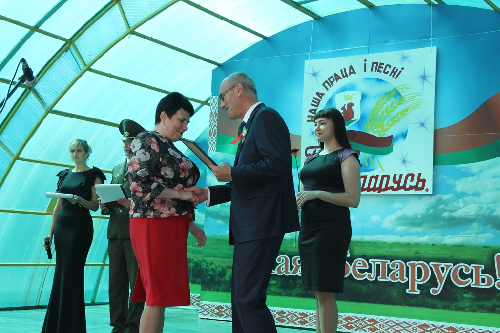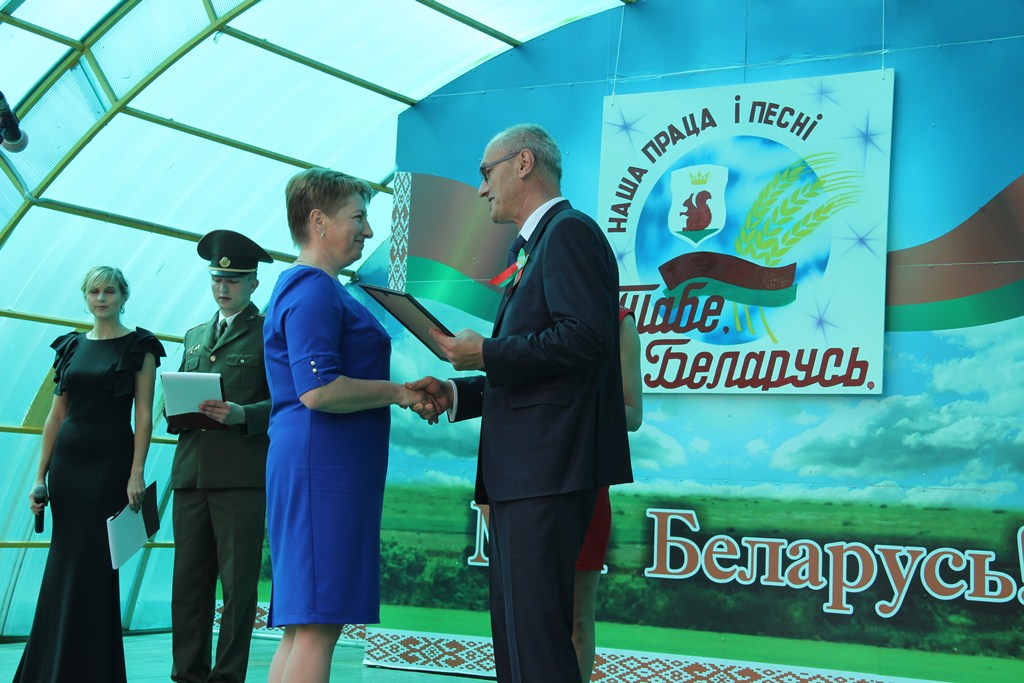Урачыстае адкрыццё свята “Табе, Беларусь, нашы праца і песні” адбылося на летняй пляцоўцы амфітэатра у гарадскім парку. Старшыня раённага выканаўчага камітэта Антон Кулісевіч сардэчна павіншаваў усіх сабраўшыхся з галоўным святам краіны. Лепшым працаўнкам раёна былі ўручаны Ганаровыя граматы і сертыфікаты аб занясенні на раённую Дошку гонару.