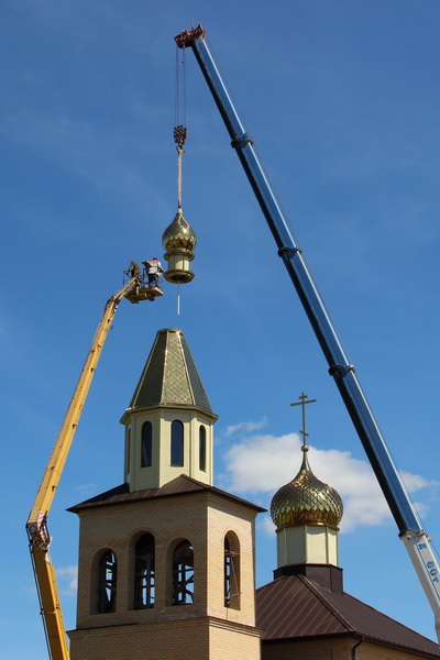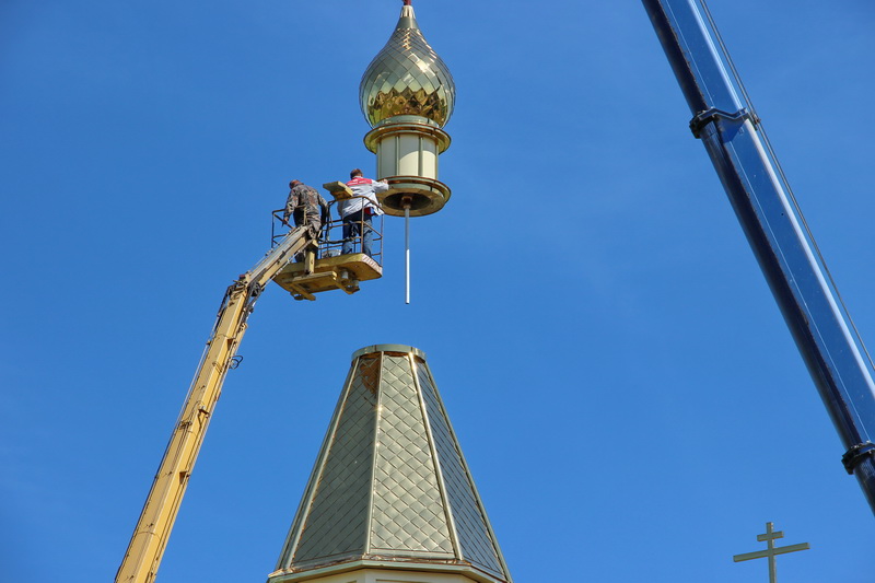 За поднятием купола все следили, конечно же, с замиранием сердца. Зрелище это, безусловно, впечатляющее и волнующее. Теперь строящаяся церковь приобрела законченный облик, величественно засияла своими золотыми куполами.