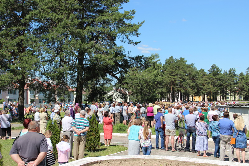 День памяти Святой преподобной Евфросинии Полоцкой, отмечаемый 5 июня, в этом году прошел для жителей агрогородка Пограничный и окрестных деревень по-особому: прежде всего потому, что на колокольню строящегося храма были установлены купол и крест, а еще потому, что в этот день состоялся праздник под символичным названием «Приграничный звон», который решено сделать ежегодным местным духовно-светским фэстом.
