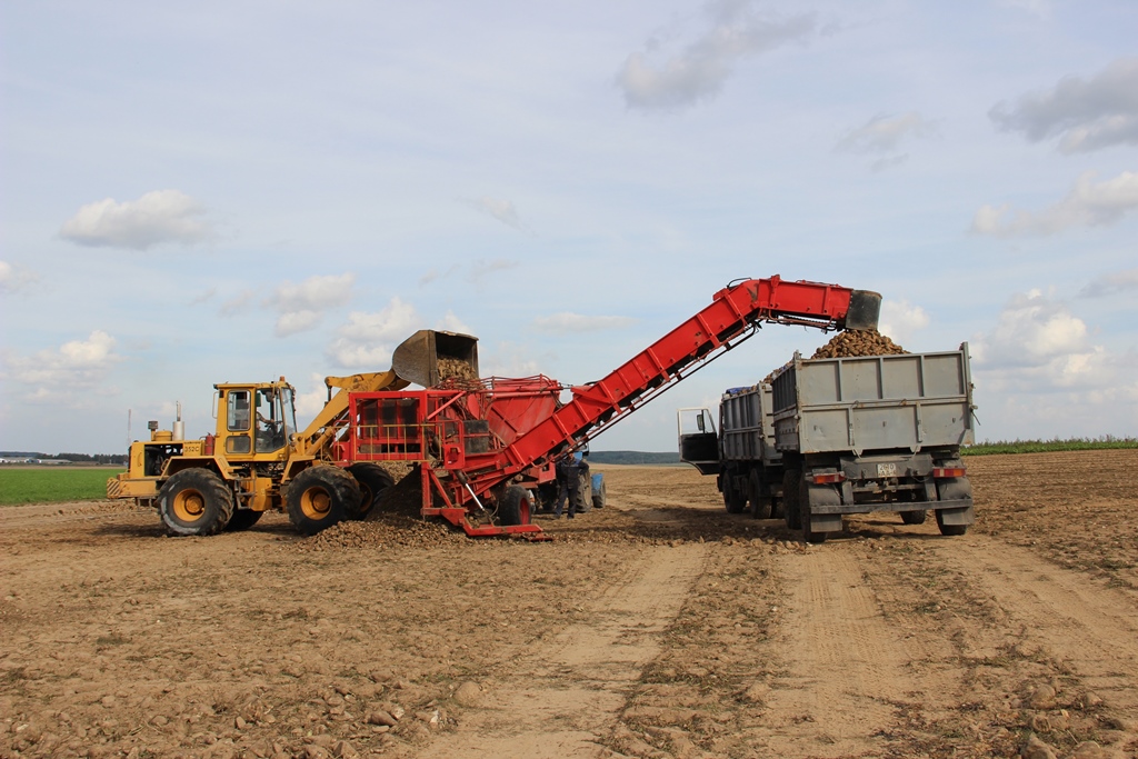 В КСУП «Малоберестовицкий элитхохз» механизированную уборку сладкого урожая осуществляют два экипажа. Сергея Романчука, работающего на свеклоуборочном комбайне «Vervaet», как раз наблюдала вдалеке в день приезда. Дислокация рулевого комбайна «Kleine» Евгения Савеля – поле вблизи деревни Едичи. Являясь главными звеньями уборочной кампании ответственными за качество уборки, работникам постоянно приходится координировать свои действия. Регулировку свеклоуборочных машин проводить для каждого конкретного поля с учетом урожайности, густоты насаждения, диаметра корнеплодов. Кроме этого, выбирать правильную скорость движения агрегата, глубину хода рабочих органов. Нехитрый алгоритм действий, к примеру, позволяет сократить потери урожая на несколько процентов.