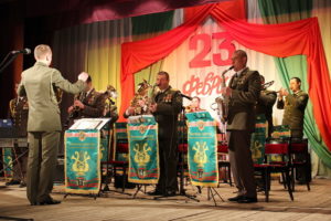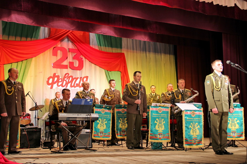 День защитников Отечества отметили на Берестовитчине рядом тематических концертных и конкурсно-игровых программ. Ярким музыкальным подарком для всех мужчин, приглашенных в четверг, 23 февраля, в районный центр культуры и народного творчества, стал концерт военно-духового оркестра Гродненской пограничной группы под руководством капитана Сергея Алексеенко.