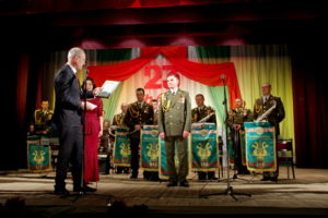К слову, концерты оркестра всегда отличаются высоким профессионализмом, находят отклик у зрительской аудитории. Не исключение и берестовицкие слушатели, которые уже хорошо знакомы с творчеством коллектива. В знак благодарности за великолепный концерт, а также за большую работу по патриотическому воспитанию населения Берестовицкого района оркестр был награжден Благодарственным письмом райисполкома, которое вручил музыкантам Антон Кулисевич.