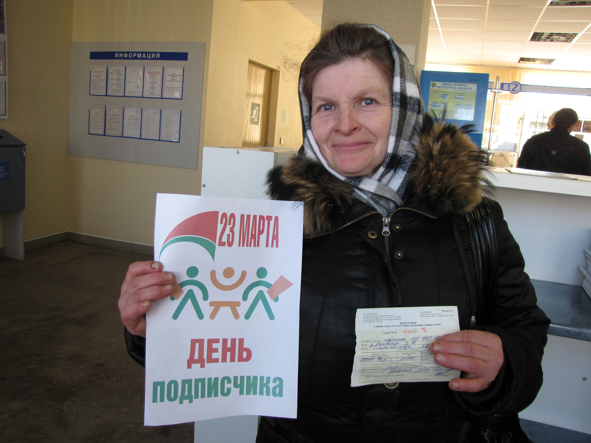 23 сакавіка ў Бераставіцкім раённым вузле паштовай сувязі адбыўся Дзень падпісчыка, які праводзіўся сумесна з рэдакцыяй “Бераставіцкай газеты”. Паштальён Марта Яфімачкіна разам з журналістам газеты запрашалі падпісацца на раённую газету ўсіх жадаючых. Варта адзначыць, што цана на яе засталася ранейшая – 7 тысяч рублёў на месяц, 21 тысяча на квартал. У сучасным моры інфармацыі трэба цаніць сваё. І многія людзі вельмі станоўча выказваліся пра раённую газету, напрыклад, жыхаркі аграгарадка Пархімаўцы Лізавета Дожына і вёскі Кашанцы Лілія Стэльмашук ( на здымках). Былі і крытычныя заўвагі, якія мы прымем да ведама. А многія людзі “захавалі вернасць” сваім паштальёнам, у якіх яны выпісваюць “раёнку” ўжо шмат гадоў. Шчыры дзякуй нашым падпісчыкам!