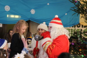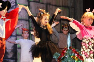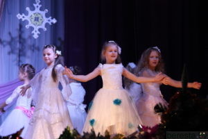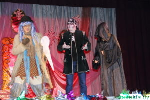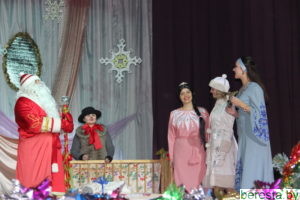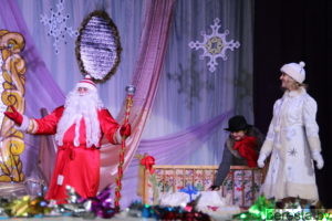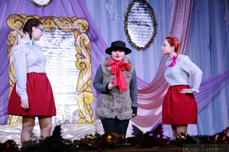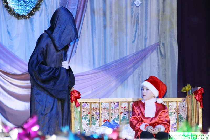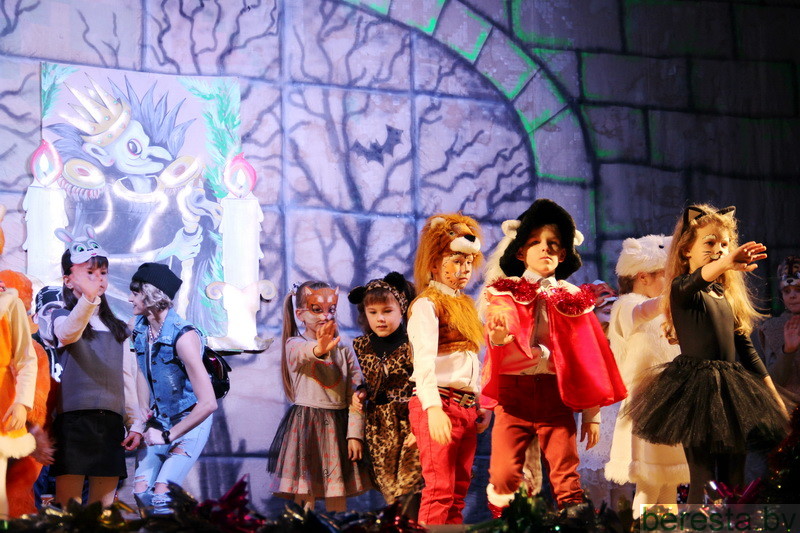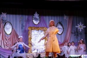 Новогоднее представление «Волшебное зеркало» в постановке режиссера народного театра «Магия игры» Марины Хамени перенесло детей в волшебный сказочный мир. Ребята окунулись в наполненную приключениями историю только что родившегося и еще совсем легкомысленного Нового года (Андрей Бозыр), которого похитили Кощей (Дмитрий Бозыр), Ведьма (Ксения Андреева), Водяной (Сергей Хилюта), дочь Кощея (Алена Михалевич). Они искренне переживали за героев сказки Машеньку (Виктория Сенкевич) и Аленку (Полина Вощила), которые с помощью Кота-Баюна (Татьяна Панасюк) отправились в Зазеркалье на поиски похищенного юного Нового года и подаренных ему Василисой Премудрой (Марина Хаменя), Марьей-Искусницей (Елена Бурая) и Варварой-Красой (Марина Ясюкевич) Мудрости, Трудолюбия и Красоты, необходимых, чтобы вернуться домой к Деду Морозу (Юрий Заяц) и Снегурочке (Юлия Атрушкевич). Захватывающая сюжетная линия, яркие декорации и костюмы героев, их эмоциональная игра, а также контакт со зрительным залом, световые эффекты, танцы маленьких участников хореографического кружка не могли не понравиться гостям праздника. Они не жалели ладошек, благодаря артистов за подаренные эмоции и праздничное настроение.