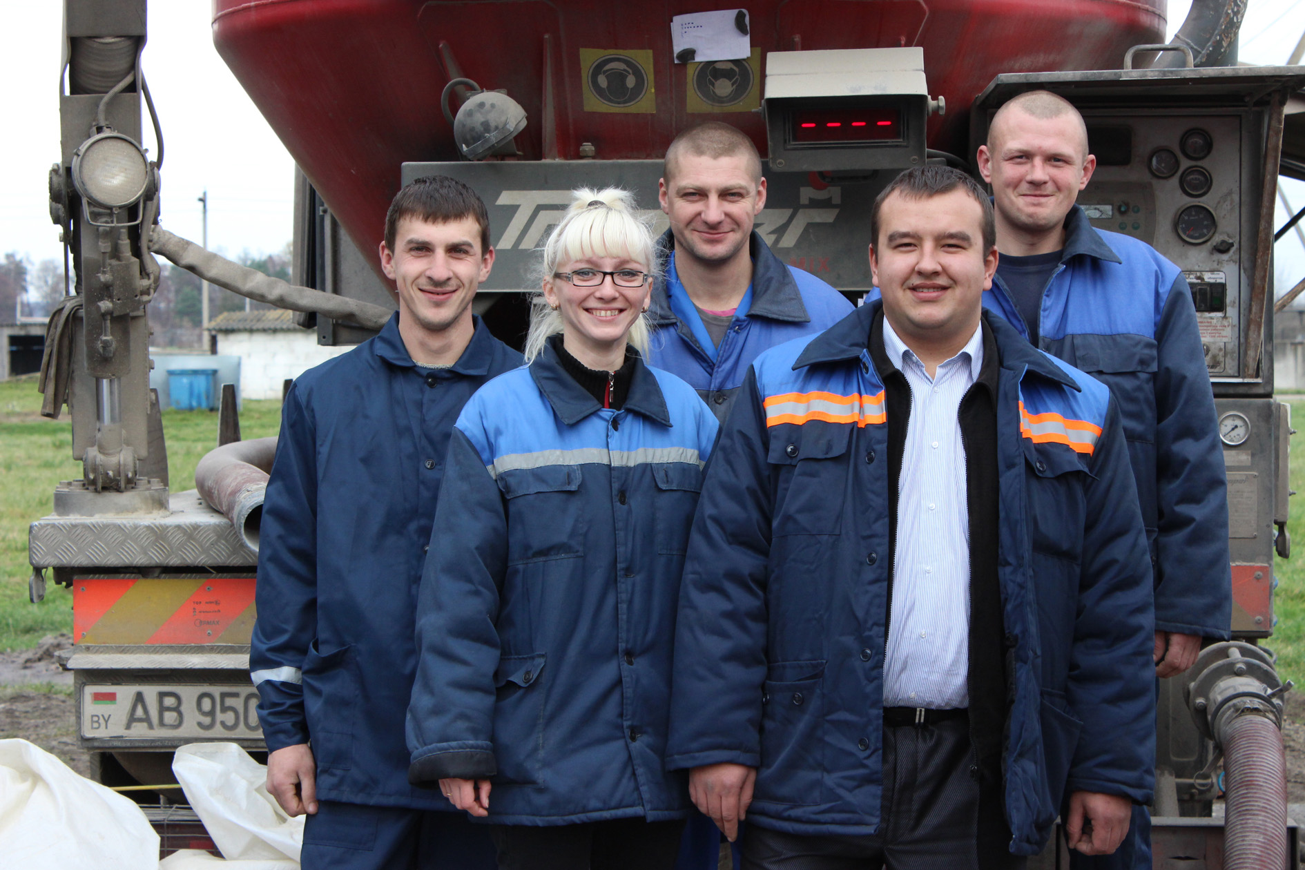 Оператор по приготовлению кормов Александр Теплов, зоотехник по птицеводству Марина Шаповалова, оператор Сергей Поляк, главный инженер Илья Борода, оператор Андрей Живель