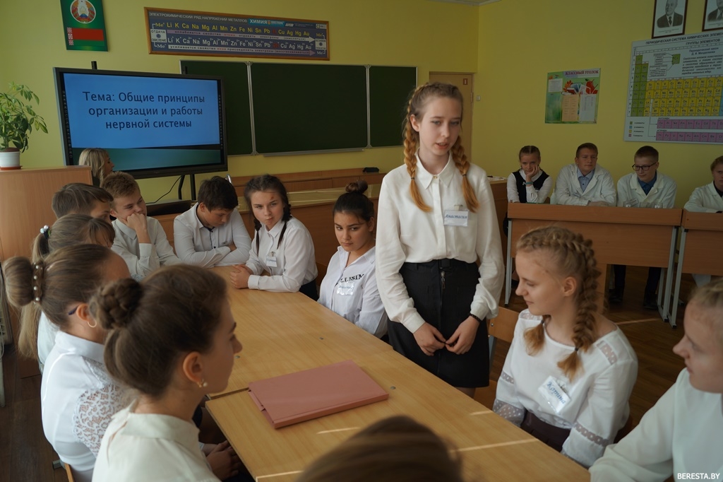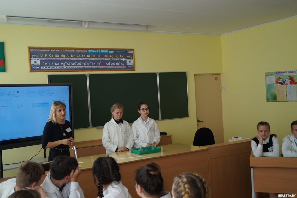 После работы в группах педагоги собрались в кабинете химии на практикум по защите творческих экспериментальных задач по биологии и химии, во время которого учащиеся Большеберестовицкой средней школы продемонстрировали интерактивные модели применения творческих экспериментальных задач на уроках химии и биологии.