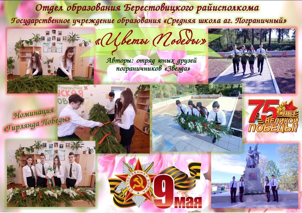 Так, дипломом III степени в номинации «Гирлянда Победы» награждены  учащиеся отряда юных друзей пограничников «Звезда»  средней школы аг. Пограничный (руководитель Т.А. Полонейчик), еще один диплом III степени —  в номинации «Букет ветерану»  — завоевала учащаяся IX класса Кваторского яслей-сада – базовой школы Диана  Коновалова (руководитель В.И. Яковчук).