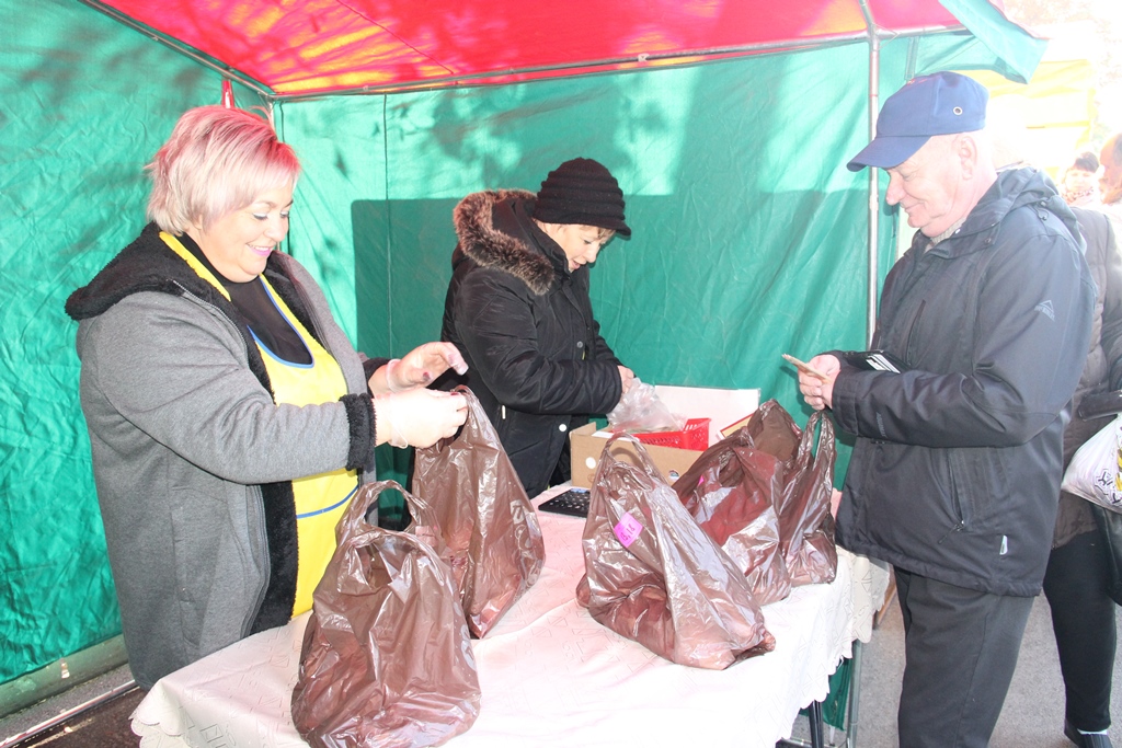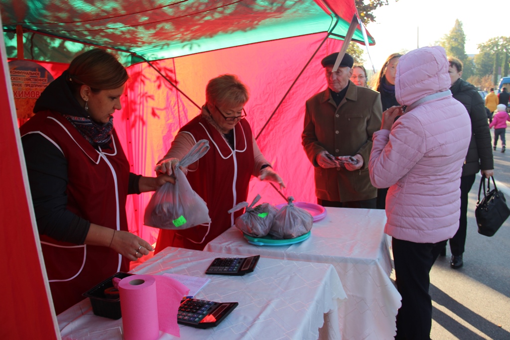 На улице Ленина разместились торговые палатки сельхозпредприятий, где продавалась мясная продукция — свинина и говядина — по цене 4 рубля 50 копеек за килограмм. Здесь, как всегда, было много покупателей, и мясо распродали очень быстро.