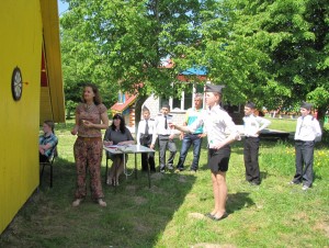 Одним из наиболее тяжелых испытаний стала для ребят туристическо-спортивная полоса препятствий, во время которой необходимо было в максимально быстрое время преодолеть маршрут, включающий в себя определение азимута, переправу по бревну, по кочкам, через мышеловку и перенос пострадавшего. Лучше всех с этим конкурсом справился отряд гимназии аг.Пограничный, второе место заняли юнармейцы Конюховского яслей-сада-СШ, третье –Большеэйсмонтовской СШ.