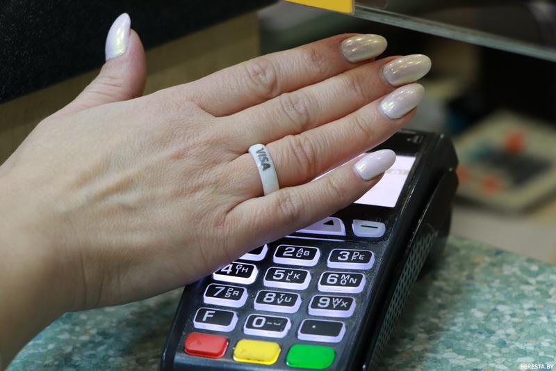 В последние время все более востребованными становятся операции безналичных платежей, ведутся ультрасовременные разработки, облегчающие бесконтактную оплату, избавляя людей от необходимости носить с собой кошелек с многочисленными банковскими картами, изобретаются специальные гаджеты, которые упрощают процесс оплаты товара или услуги. Оплата смартфоном, смарт-часами, фитнес-браслетом, брелоком стала реальностью нашего времени. К таким картам нестандартной формы, или, как их еще называют, картам нового поколения относится и платежное кольцо. С июля текущего года возможность совершать платежи кольцом появилась у клиентов Белагропромбанка. Первой в Берестовицком районе такой возможностью воспользовалась жительница райцентра Анастасия Масловская.