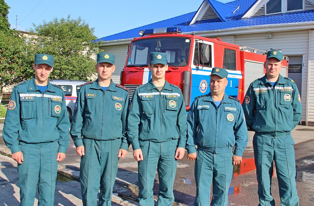 Фото из архива РОЧС (1992 год) слева направо: П.Г. Горбач, начальник караула; Р.Т Конецкий, водитель; Л.Б. Клишевич, старший водитель