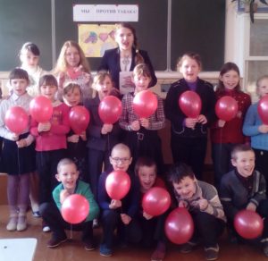 форме о вреде курения. От имени Головного Мозга, Сердца, Желудка и Лёгких члены агитбригады призвали ребят заботиться о своём здоровье. Учащимся начальных классов старшеклассники подарили красные воздушные шарики в виде сердца, желая им крепкого здоровья. Все хором поклялись – «Нет – курению! Здоровому образу жизни – ДА!»