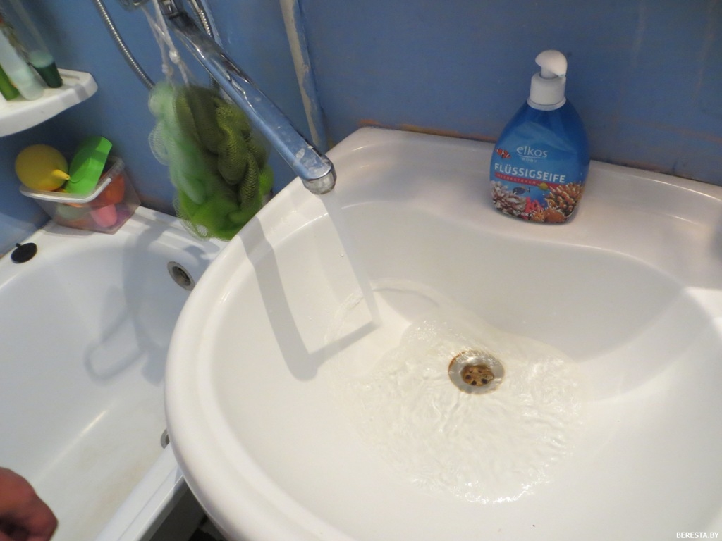 Посетили мы и квартиру, снимки из которой были размещены в соцсетях. Хозяйка нам пожаловалась, что у нее несколько раз в неделю (чаще по вечерам), а по субботам с утра до обеда вода из крана течет рыжего цвета. И тогда ни помыться, ни постирать невозможно. На момент нашего посещения вода была, как и подобает, прозрачная.