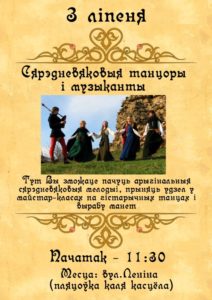 12.00 — 14.00 — «Сярэдневяковае шоу»: турніры і атракцыёны, развучванне побытавых танцаў, фотазона з сярэдневяковымі рыцарамі, вясёлыя жарты і забавы