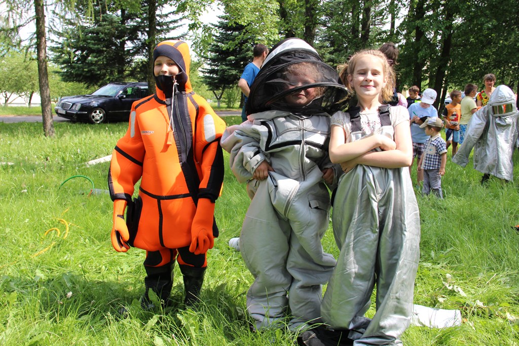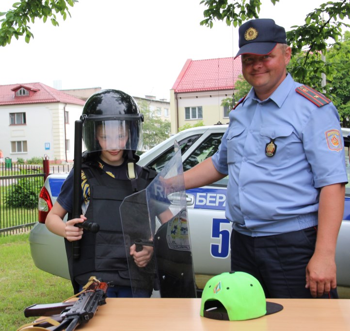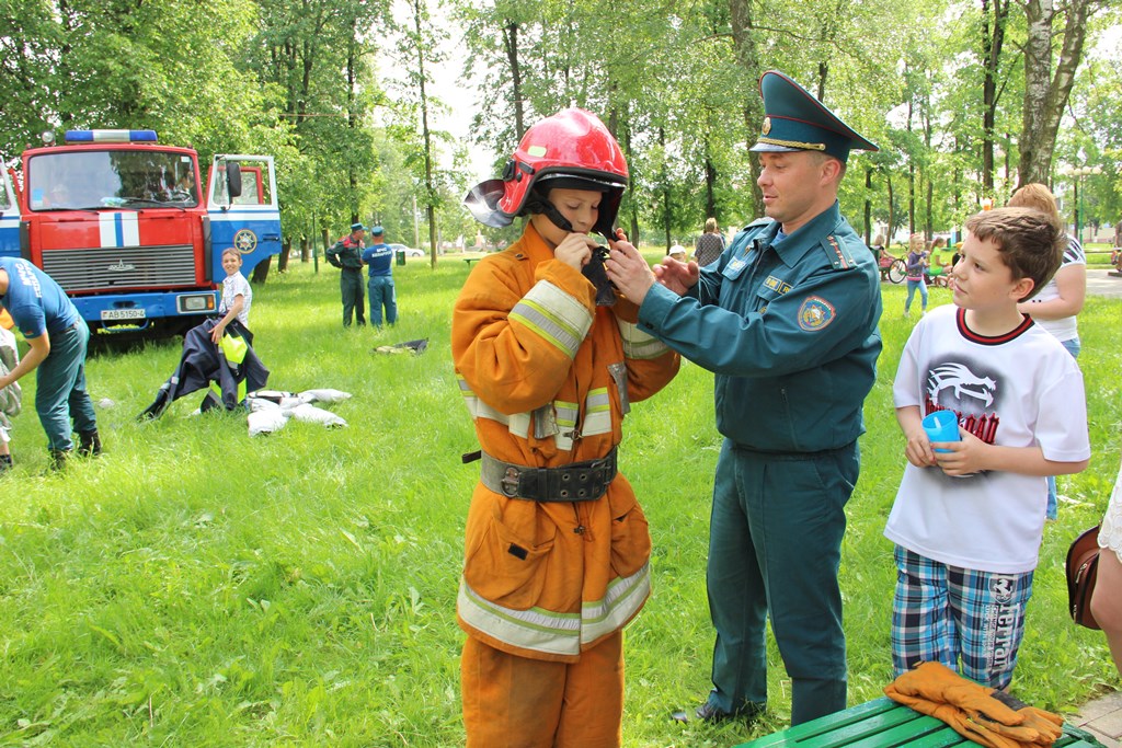 С особым интересом мальчишки и девчонки направлялись к площадкам районного отдела по чрезвычайным ситуациям и РОВД, на которых была представлена служебная техника, оборудование, средства защиты и служебная форма. У каждого была возможность примерить костюмы спасателей, в которых они борются с огнем и другими стихийными явлениями, посидеть за рулем пожарной машины, попробовать свои силы в решении шаблонов по правилам дорожного движения, подержать в руках оружие и средства зашиты, которыми пользуются милиционеры.