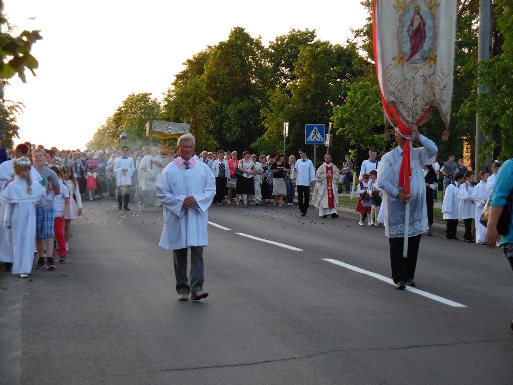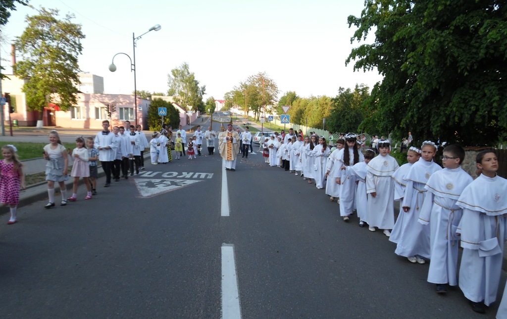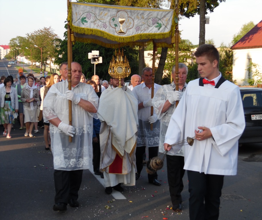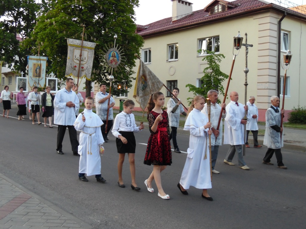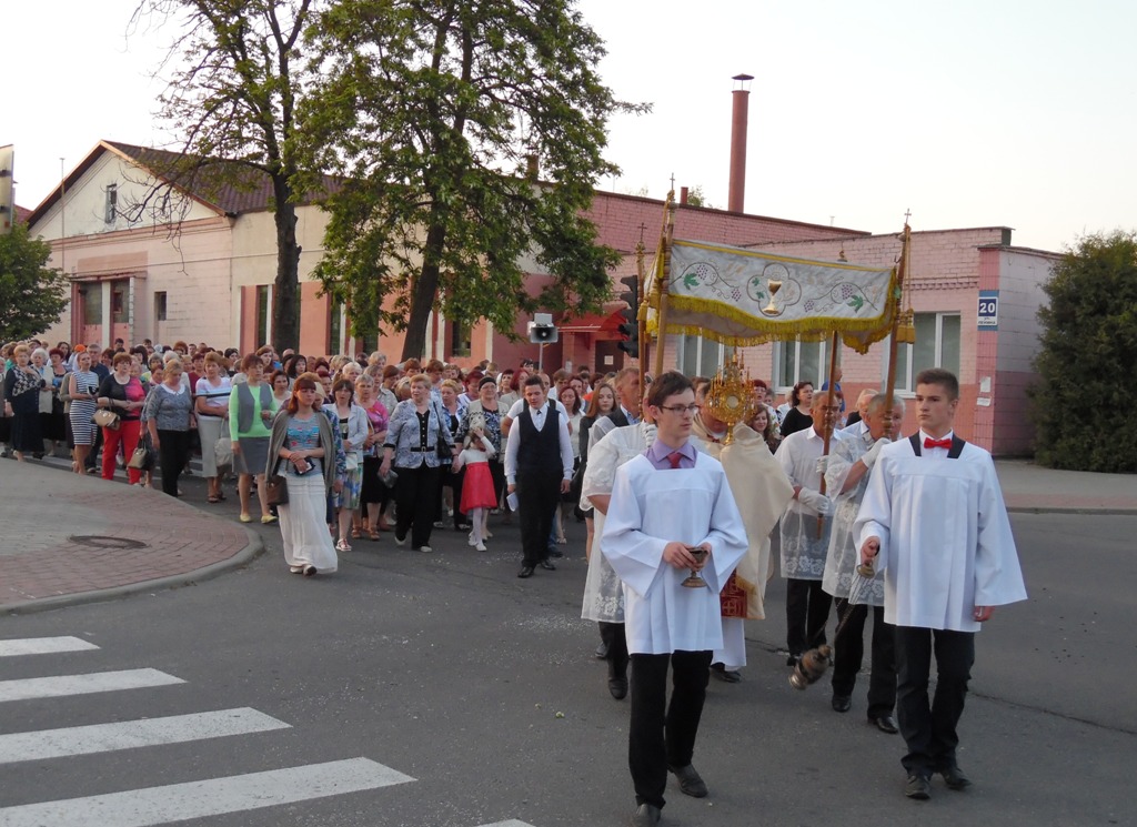 Пасля вячэрняй святой Імшы сотні вернікаў разам са святарамі а.Вальдэмарам Слотам і а.Анджэем Іадкоўскім прайшлі вуліцамі райцэнтра, каб публічна падзякаваць Богу за ўсе дары, атрыманыя ад Яго, і вызнаць сваю веру ў прысутнасць Езуса ў Найсвяцейшым Сакраманце. Працэсія затрымлівалася каля чатырох алтароў, дзе чыталіся фрагменты Евангелля і адбывалася бласлаўленне Найсвяцейшым Сакрамантам.